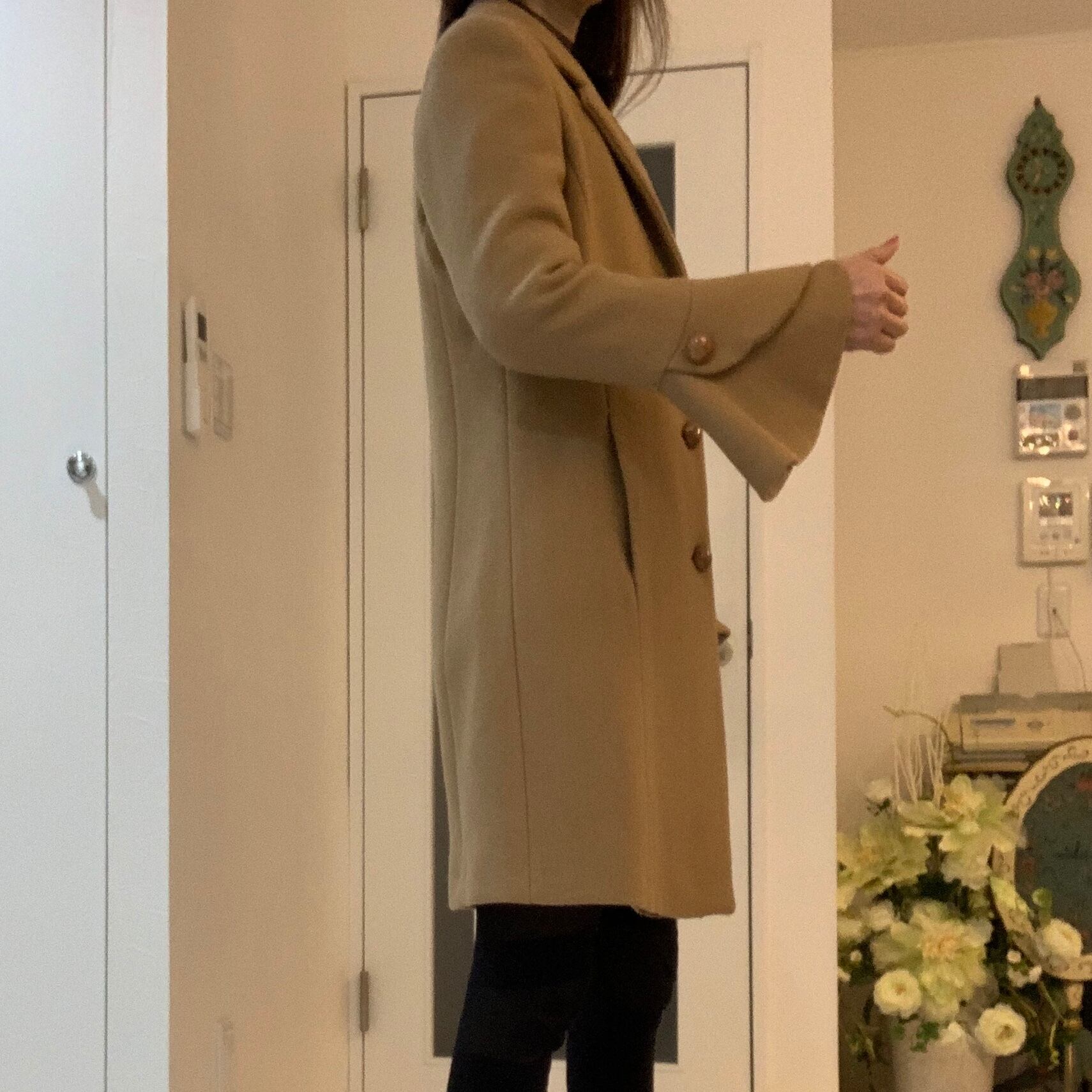 お袖のフリルが女性らしい柔らかな印象を引き上げるコートです♪