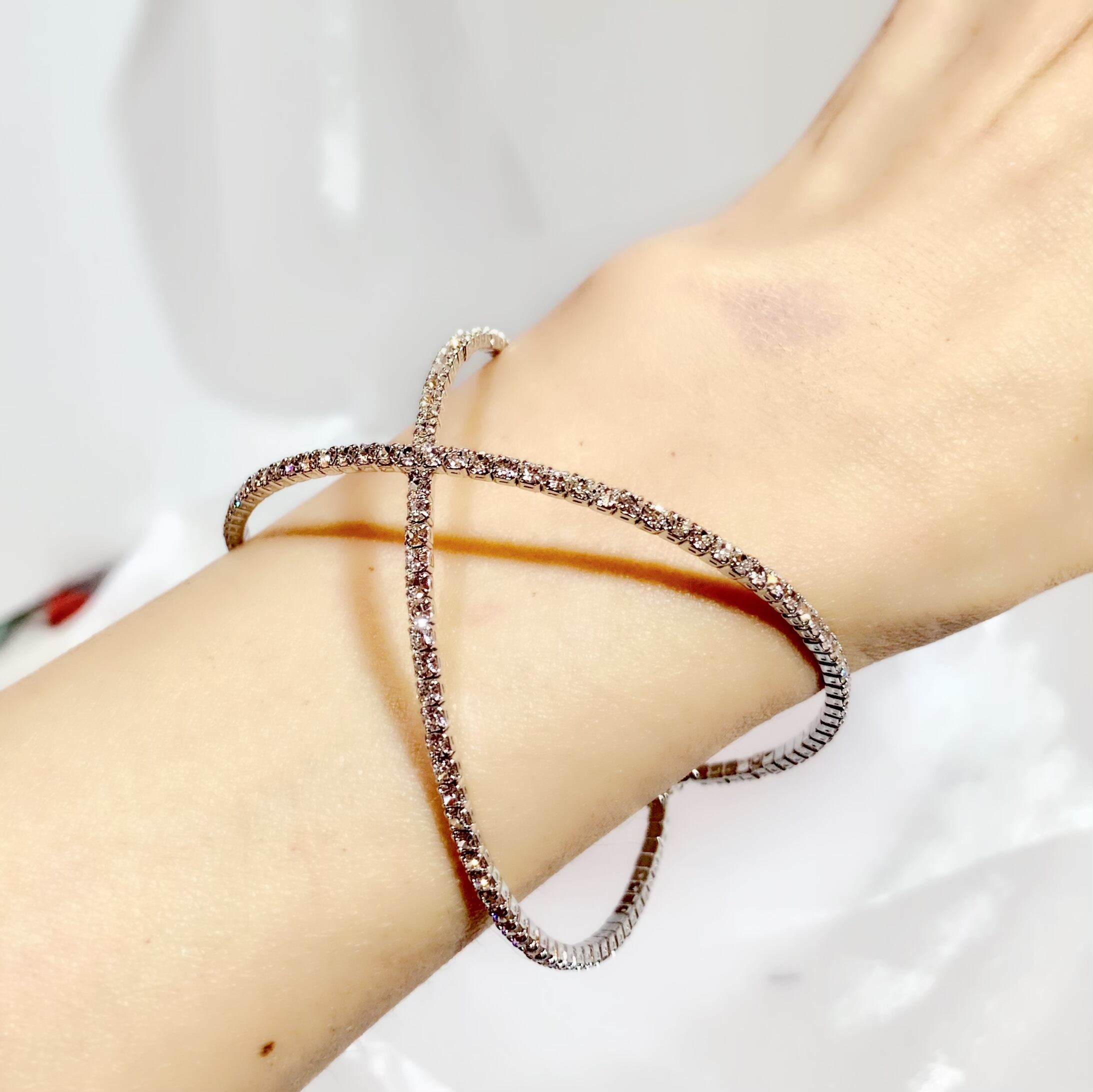 二本のワイヤーがクロスされた状態のブレスレットです。
