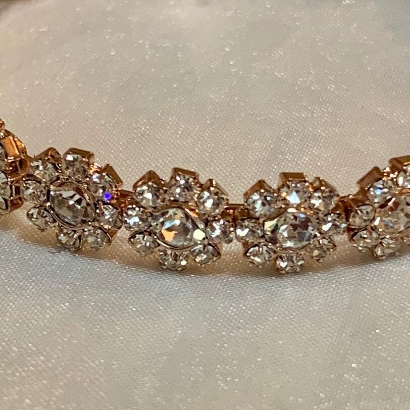 そのフラワーモチーフが19個連結されたキラキラと華やかなブレスレットです。