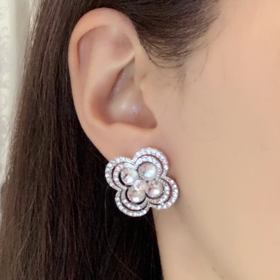 お花のモチーフがキラキラと輝いて素敵なピアスです。