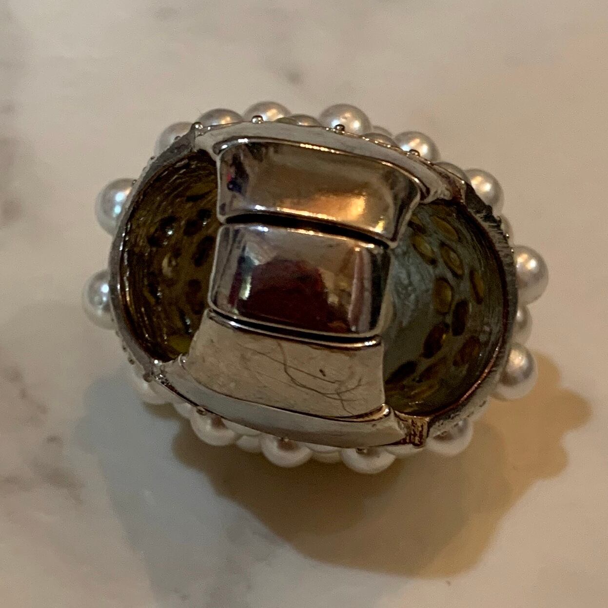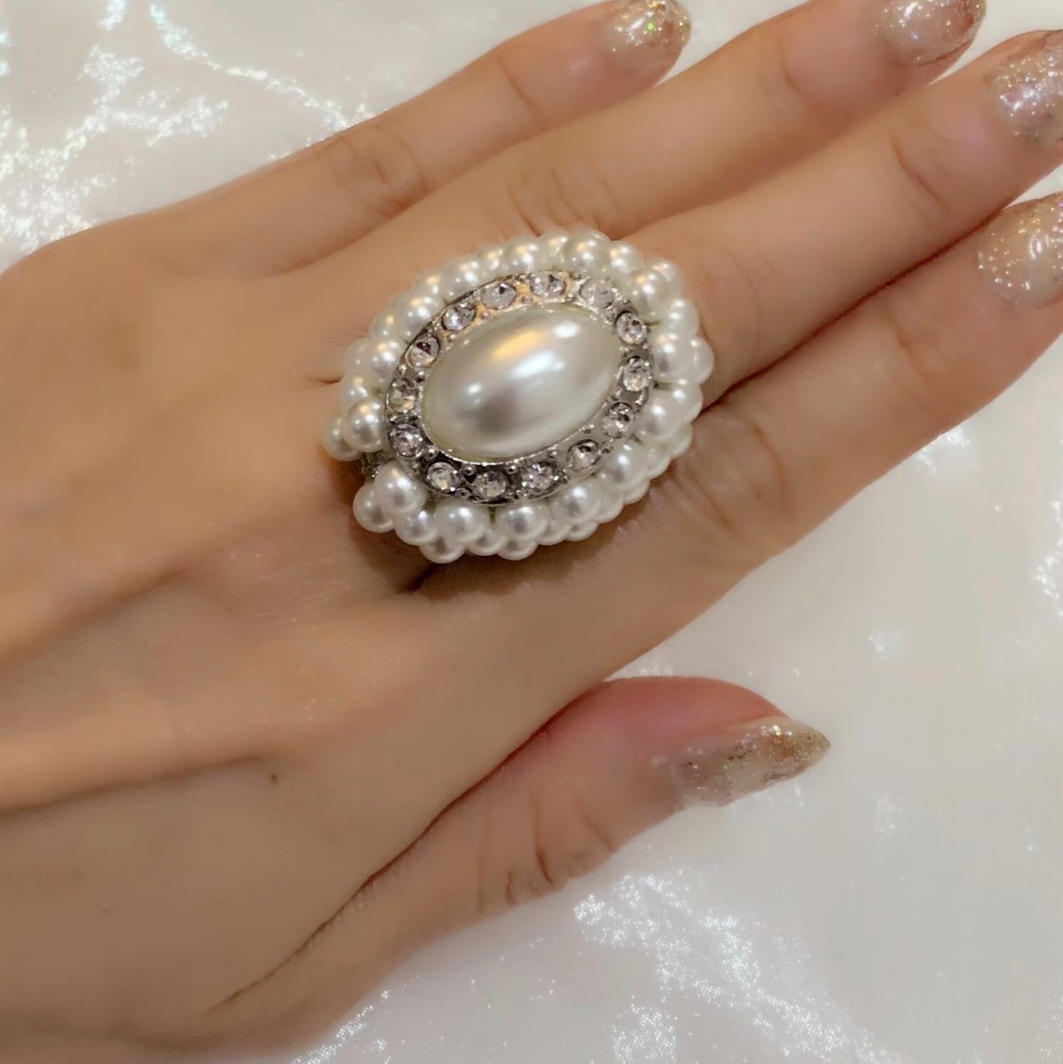 中央の大きな白色パールの大きさは、2㎝×1.2㎝です。