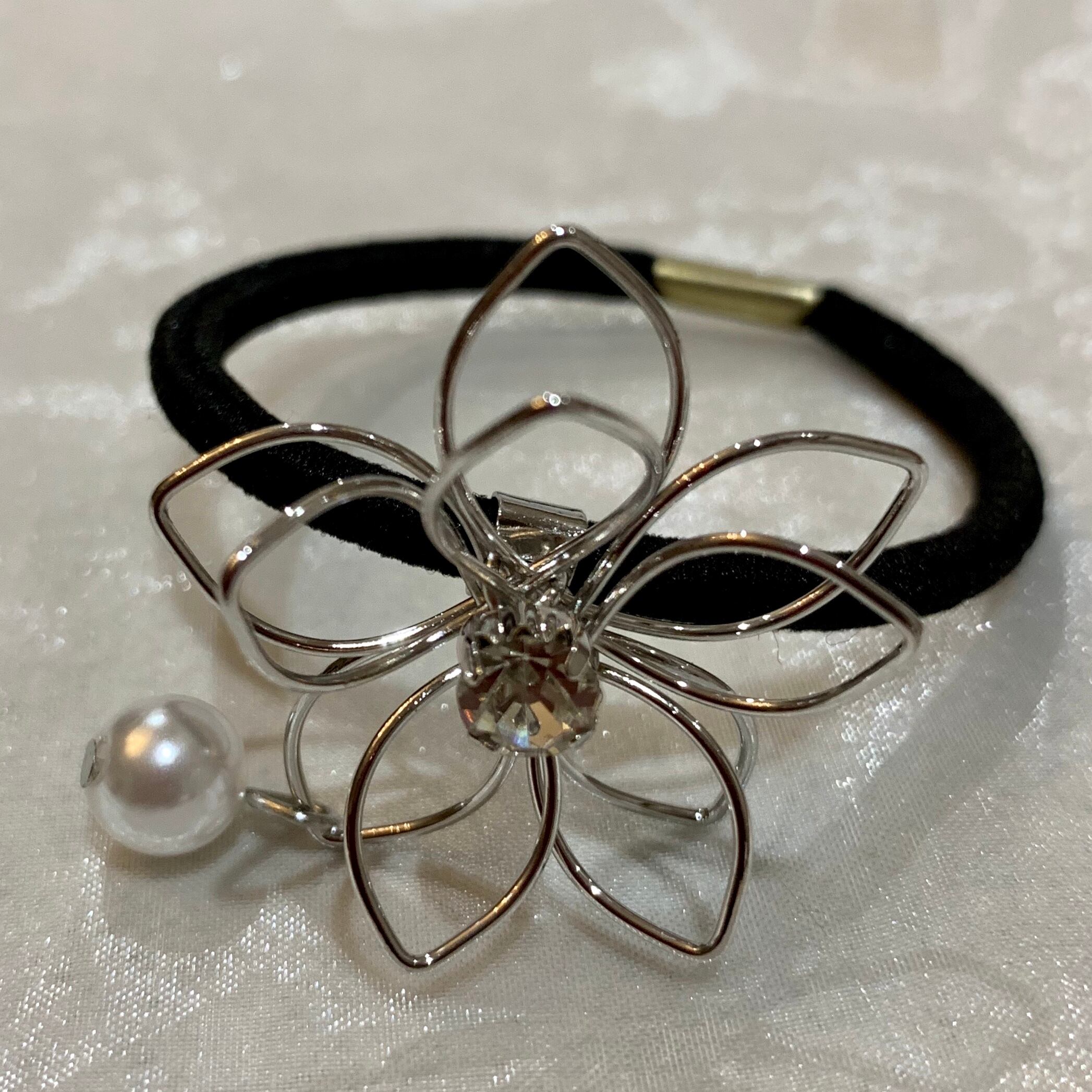 ワイヤーフレームフラワーモチーフヘアゴム パール付き