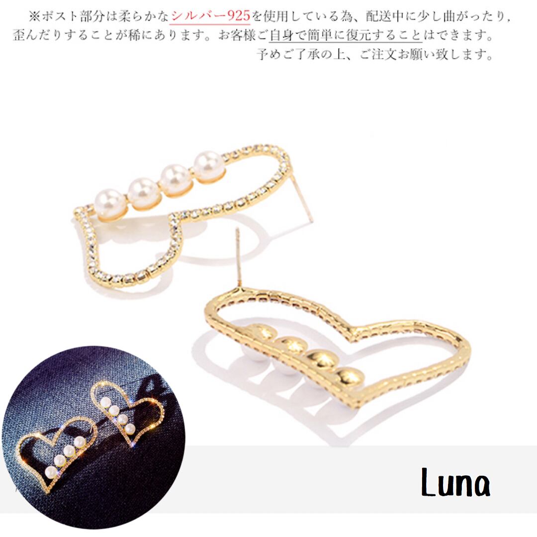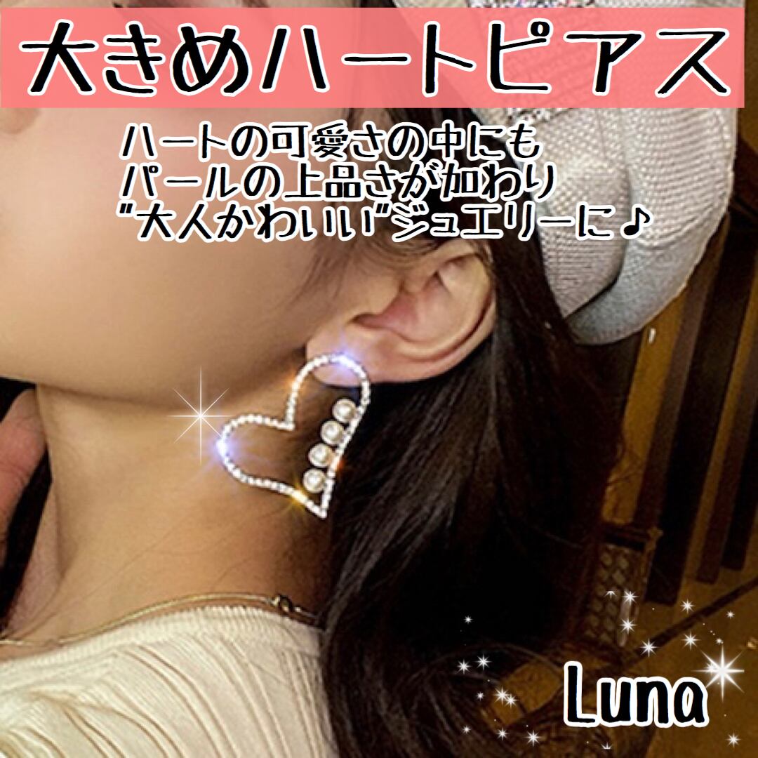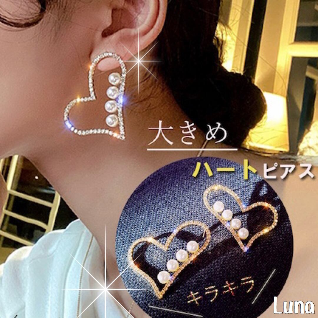 ゴールドハートと4粒のパールを装飾した大きめキラキラクロッシングピアスです