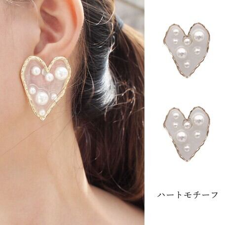 アクリル&パールのピアス 星モチーフ ハートモチーフ