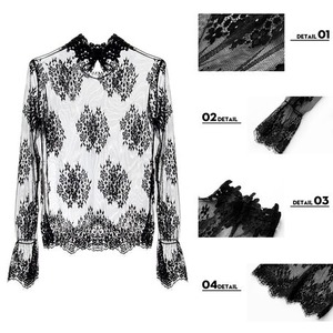 繊細な花柄レースが魅力のフリンジ付きフレアスリーブシースルーブラウス