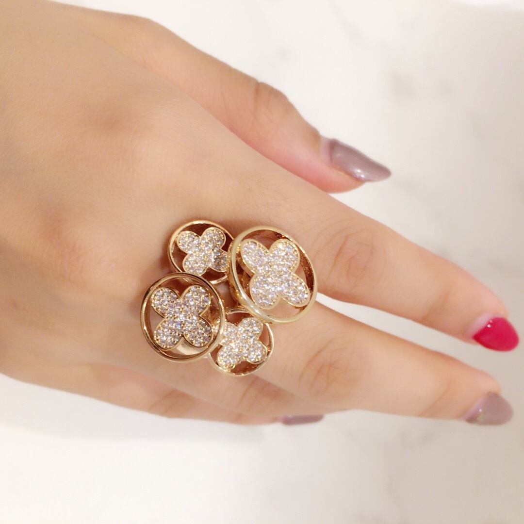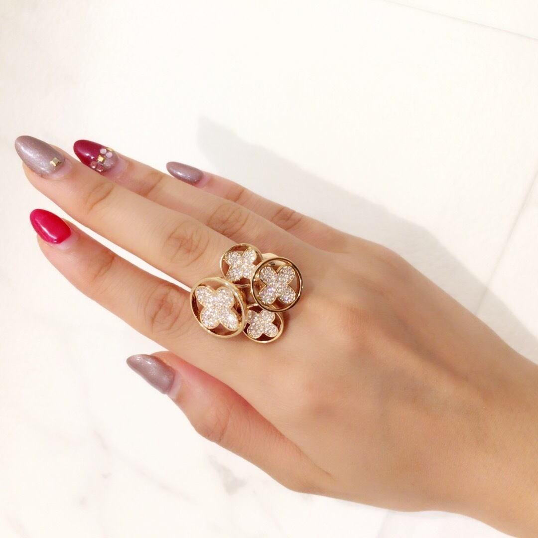 四つ葉のクローバーモチーフの全面にビジューが付いていてキラキラと輝いて大変綺麗です。